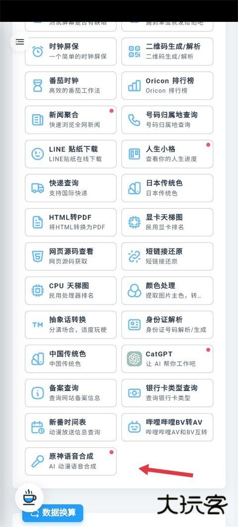 1、进入到工具之后,点击最下面的原神语音合成功能。