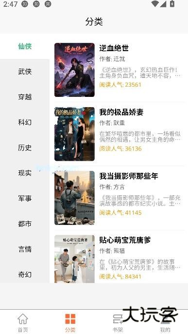 2、按照书籍的题材、情节展示小说资源,帮助用户更好地查找或挑选优质书籍;