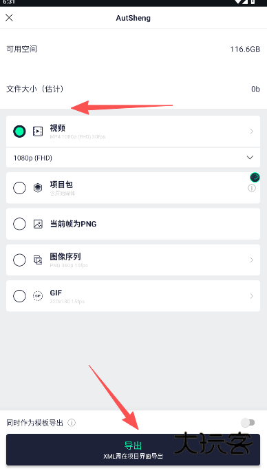 7、选择你要导出的格式,看是否要当做模板运用,要的话点击导出选项上方的图标。