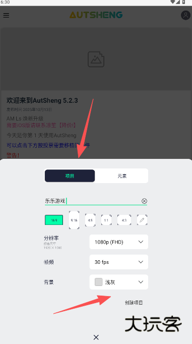 4、点击+选项创建项目。