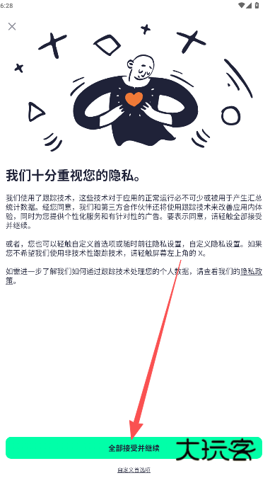 2、重启后免登录进入,点击接受全部隐私说明注意事项部分。