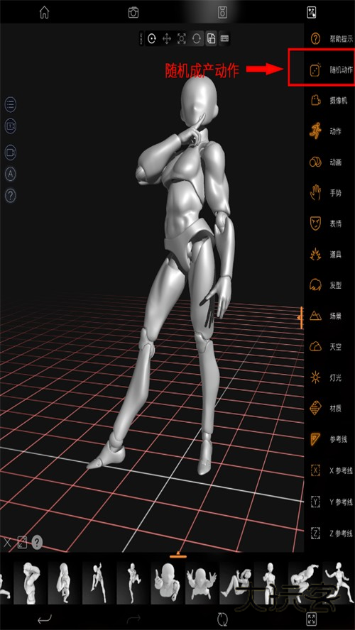 3.还有一个“随机动作”可以随机生偶“Pose”,作为速写练习,动态绘画练习。