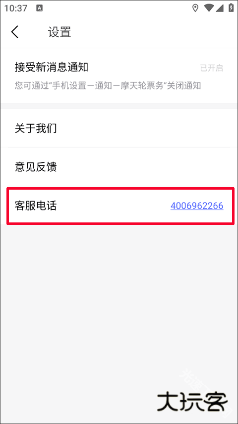 2、在设置当中就能看到客服电话了,客服电话是4006962266。