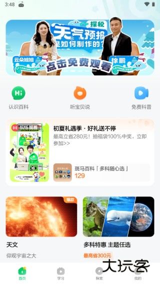 斑马百科是一款专为5到12岁儿童推出的一款教育百科全书软件,软甲采用了3D互动教学的方式,包含了非常丰富的学习资源和科普内容。并且,软件采用了趣味动画结合教学、ai互动练习的方式,使得孩子在趣味的动画中不知不觉的便掌握了知识,彻底拜托了刻板的教学方式。