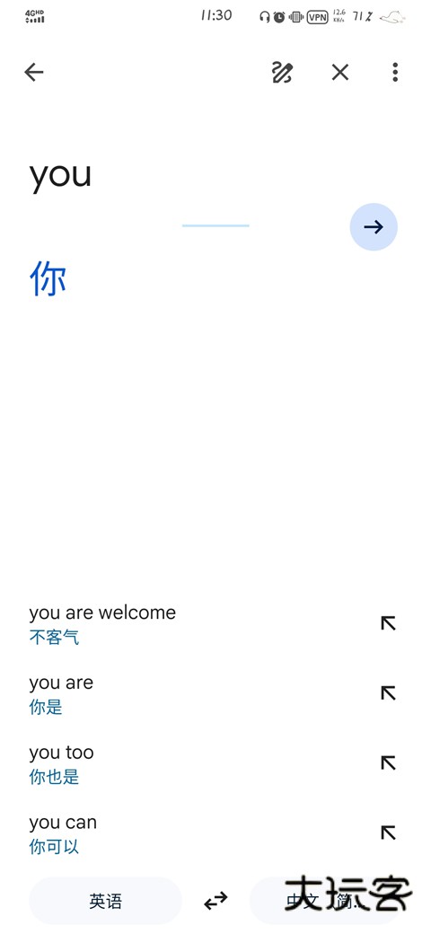 3. 照片翻译:提供即时相机翻译功能,用户只需要将相机镜头对准要翻译的文字,就可以在屏幕上看到翻译结果。