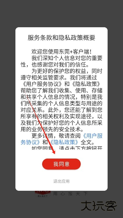 1、下载东莞+app进入后阅读并同意东莞+app的用户协议