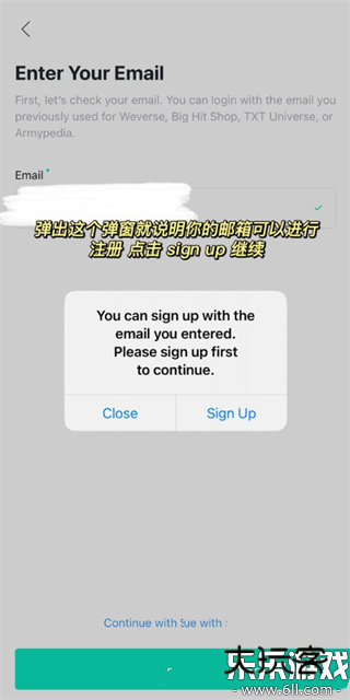 4、弹出这个弹窗就说明你的邮箱可以进行注册,点击sign up继续