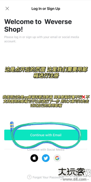 3、这是点开后的页面这里我们需要用邮箱进行注册,小编使用过的是qq邮箱和新浪邮箱网易邮箱好像不行,不支持使用的邮箱它不让你进行下一步,所以大家可以先去试试其他的常用邮箱