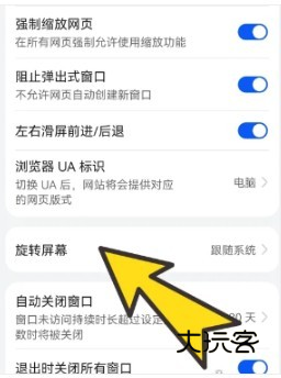 2、进入浏览设置界面后,找到并点击旋转屏幕。