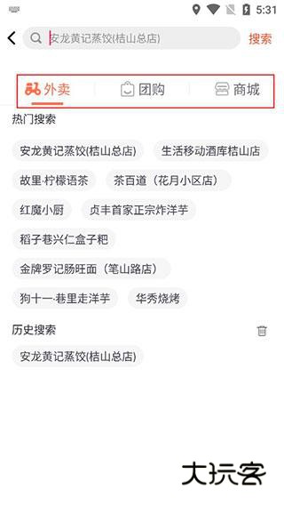 2、我们可以点击搜索框搜索,像外卖团购商店都可以在这里搜。