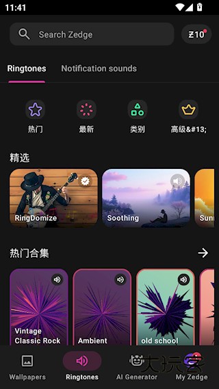 Zedge铃声作为一款实用的手机软件,帮助无数用户解决了定制化铃声、壁纸的需求,轻轻一点即可快速找到自己喜欢的壁纸以及铃声,无需下载就能够快速应用到自己的手机上,十分便利是用户的不二选择。