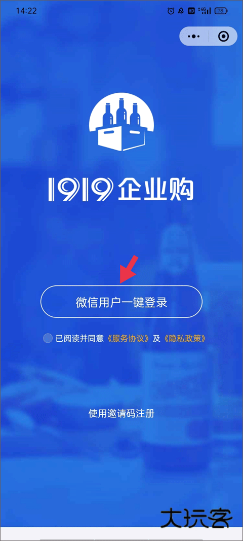2、页面就会开始跳转到1919企业购小程序,等待一会儿后,勾选下方的“已阅读并同意……”,接下来点击“微信用户一键登录”。