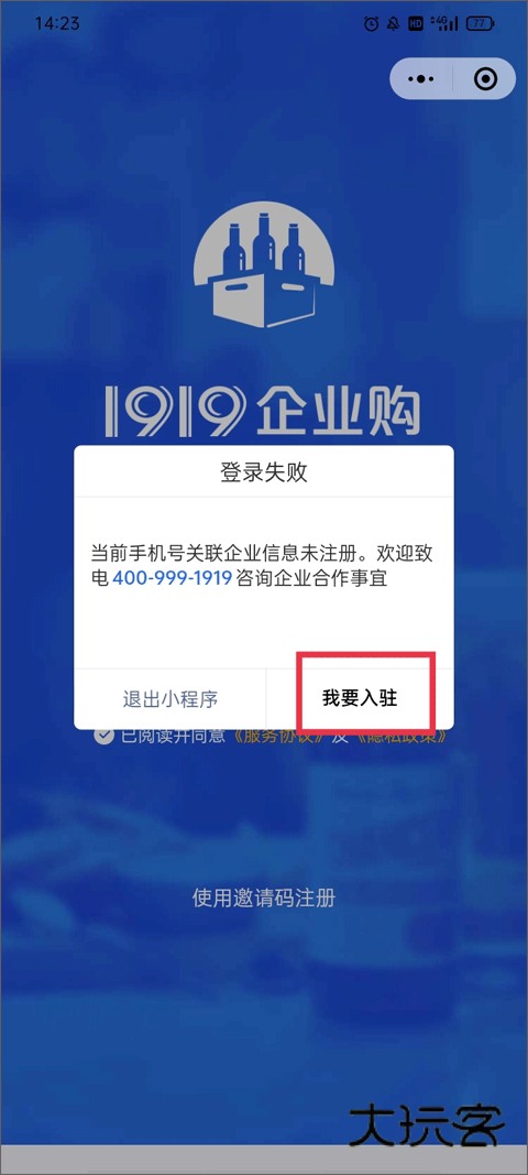 3、因为作为用户你还未注册过相关的企业信息,点击右边的“我要入驻”按钮。