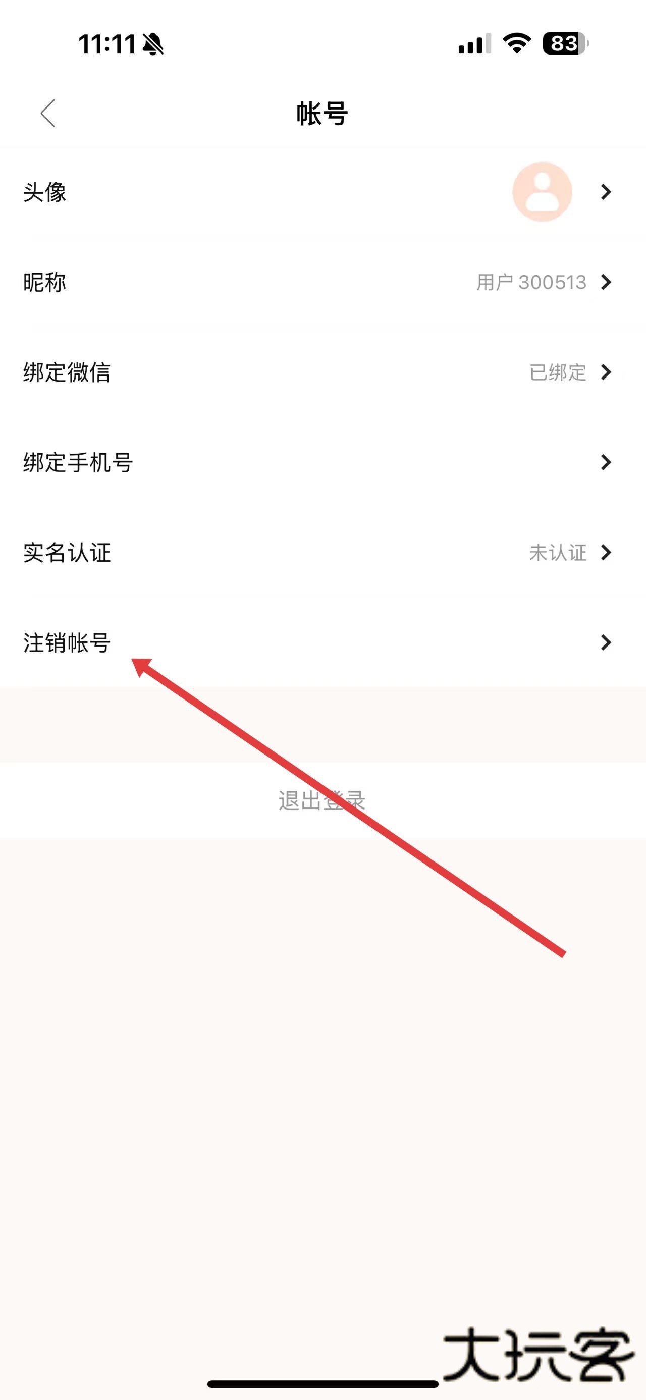 3、在帐号设置界面里,找到并点击注销帐号选项。