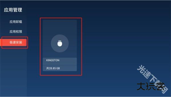 4、在电视卫士中,点击【应用管理】-【极速安装】,点击U盘。