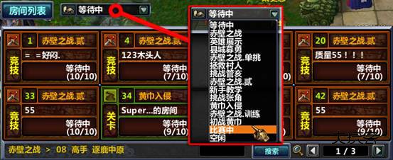 4、在房间列表中,搜索等待中的房间,如果有适合您的房间,点击房间即可加入(比赛中房间不可加入)。
