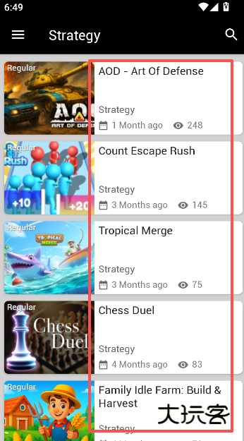 2、在当前游戏题材栏目下所有游戏,都会在这里详细展示,觉得符合你的游戏需求,就直接点击打开。