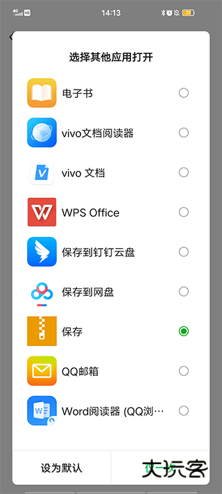 1、在微信里长按文件在弹出框里选择其他应用打开,选择解压软件即可导入文件。