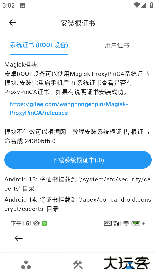 3、这里展示的是系统证书在这里直接点击下载就可以。