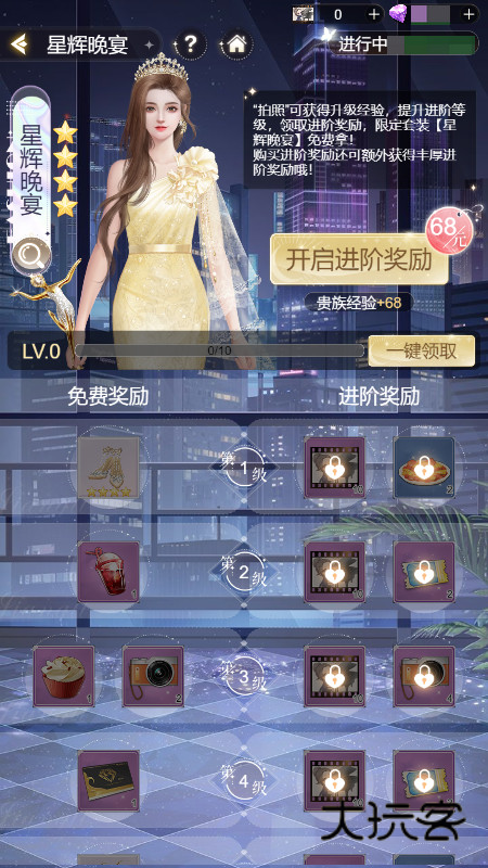 活动中开启【星辉晚宴】进阶奖励,可以获得更多【底片】助力三小姐兑换心仪的活动服饰,且包含大量道具奖励,性价比极高,一定要记得购买哦!