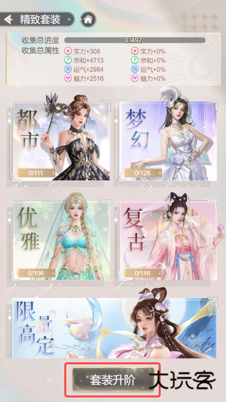 【眷光影宴】活动中有4/5/6星三种品质的服饰套装供三小姐选择,可以自行根据喜好进行收集。