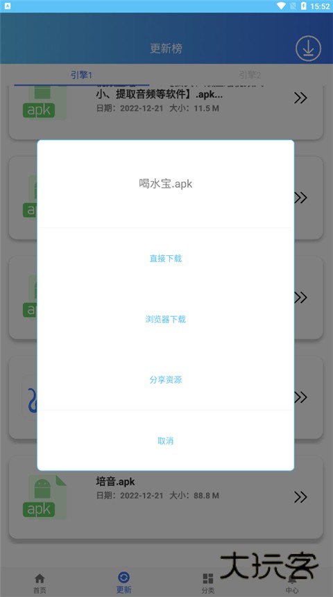 6、这以喝水宝为例子,点击喝水宝即可直接下载,也可以选择浏览器进行下载,另外还可将资源分享给第三方小伙伴都是可以的。
