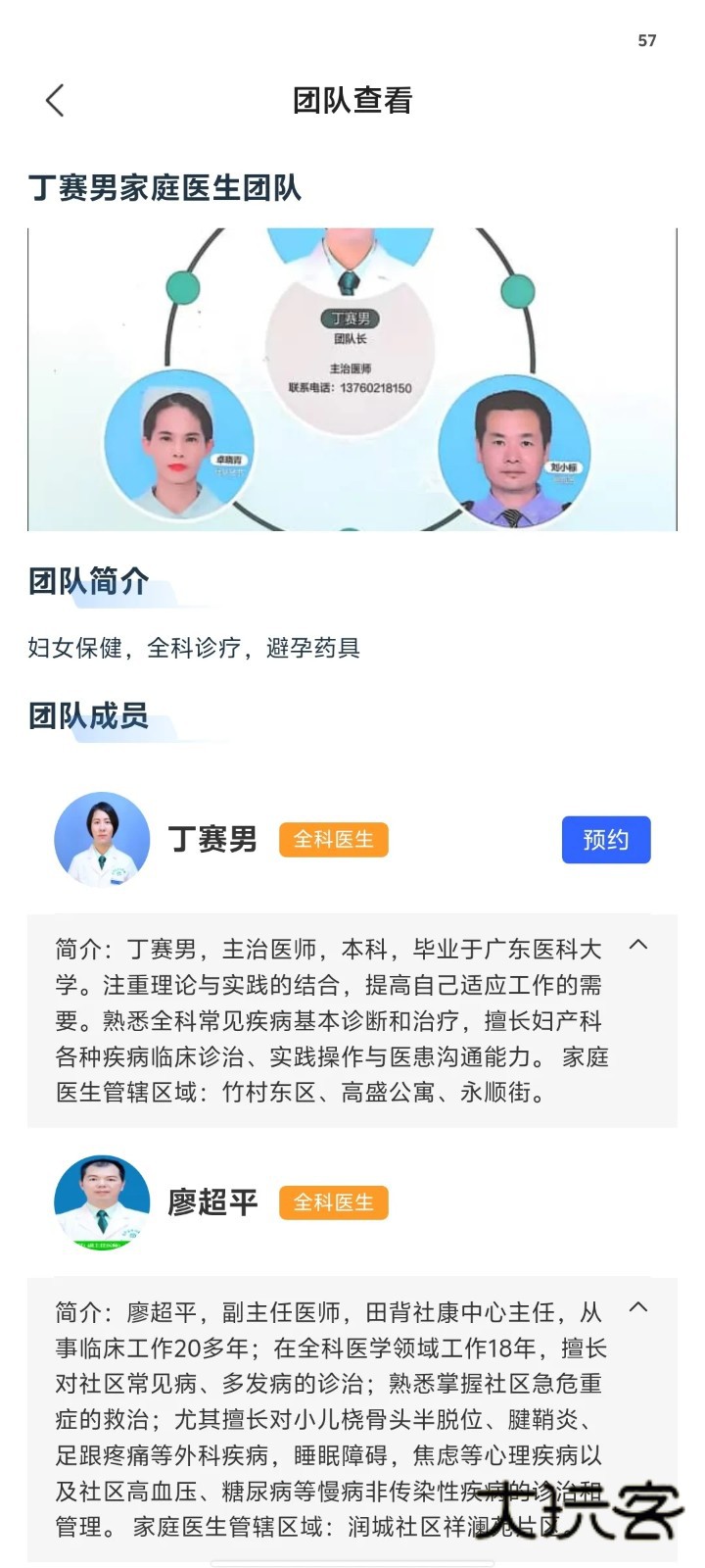 3、您可以随时查看签约社康中心及家庭医生团队的详细信息,在线完成健康评估问卷。