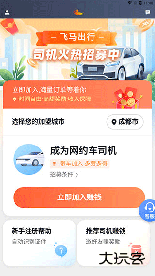 2、成功登录后,我们点击【立即加入赚钱】按钮,去注册成为一名网约车司机;
