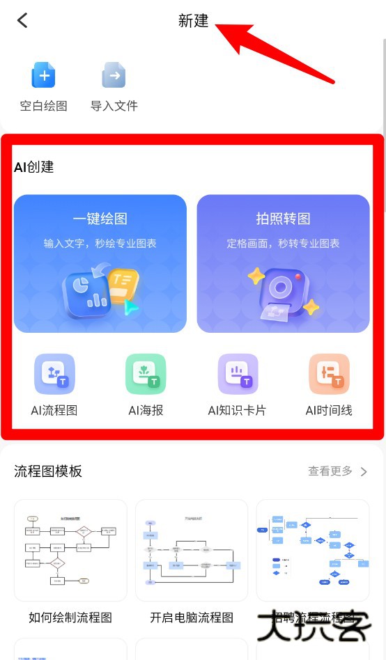 3、点击“新建”进入AI创作区,支持输入文本或上传照片自动生成专业图示结构。