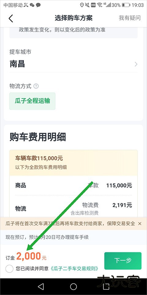 如果用户交的是订金是可发在平台上进行申请退押金的,注意一定是订金,而不是定金,如下图所示,用户在买车过程中交的订金是可以在平台上进行退还申请的。