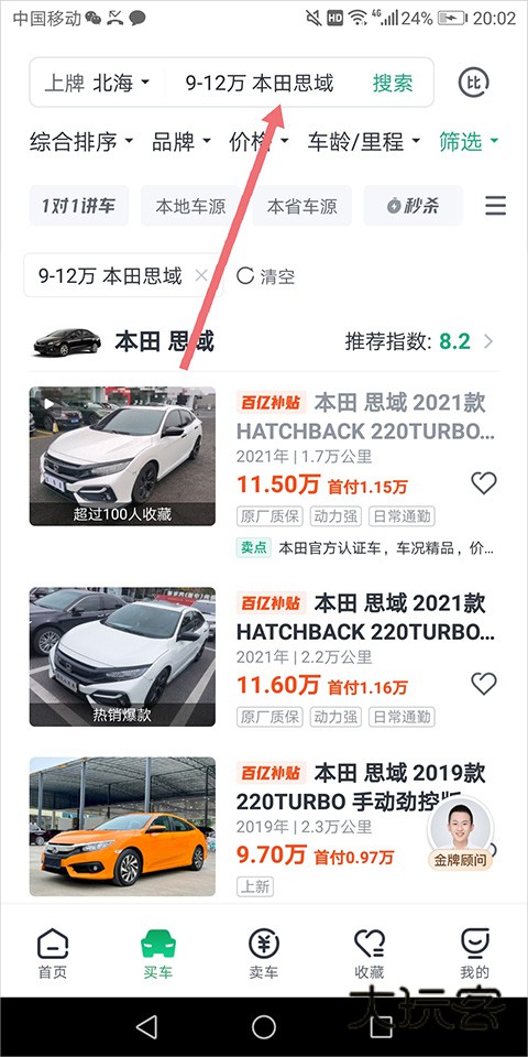 3、也可通过顶部搜索框直接输入车型或者昌价格和车型同时输入进行车辆匹配;
