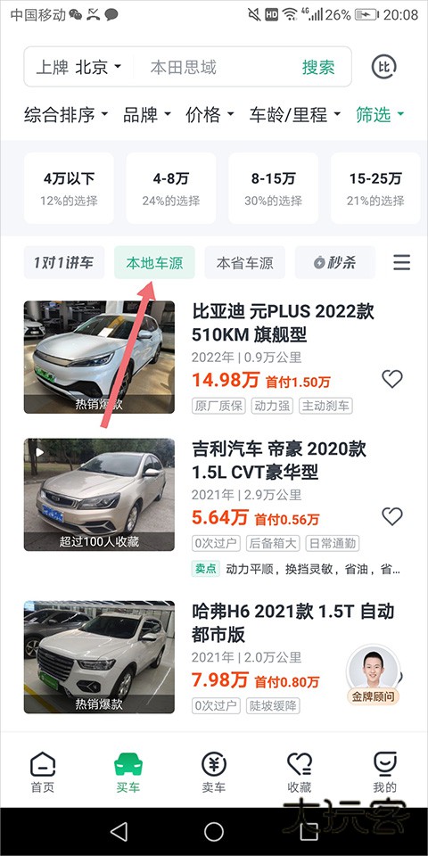 5、如果想购买本地车源,可通过点击【本地车源】进行查询,平台可按照车辆上牌城市来进行本地车源的匹配;