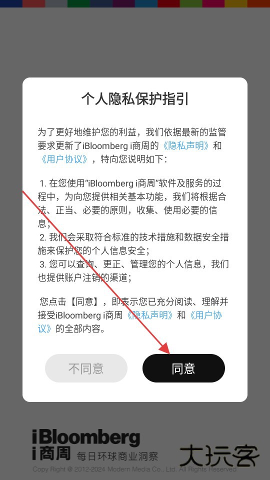 1、首次打开APP会弹出用户协议及隐私政策界面,需仔细阅读后点击同意才能继续使用APP,这一步是为了确保用户了解并同意平台使用个人信息的规则。