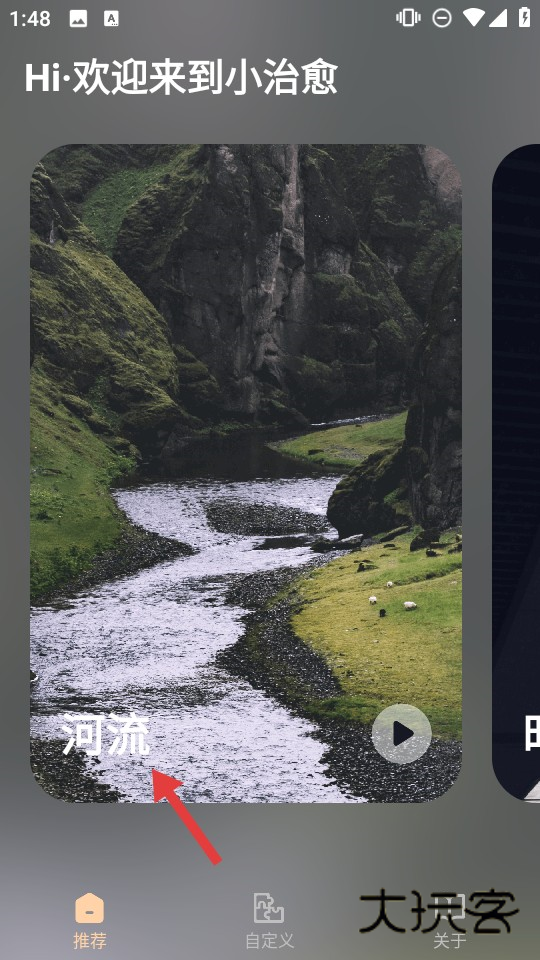 2、在【推荐】页,浏览【河流】等内容,点击播放体验治愈场景。