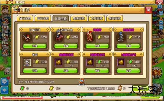 4、在【商城】→【宝殿】内,可以在【联盟宝殿】内使用蓝钻或者黄玉牌购买心仪的武将哟。