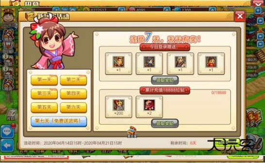2、在【福利】→【七日签到】内,村长大人们累积签到7天就可以从系统提供的4名紫将中选取一名收入囊中哦!