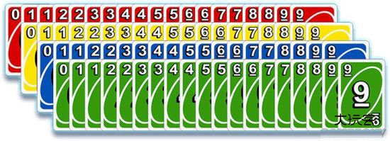 四色构成,数值0至9,每色共19张,合计76张,结算时以牌面数字记分。