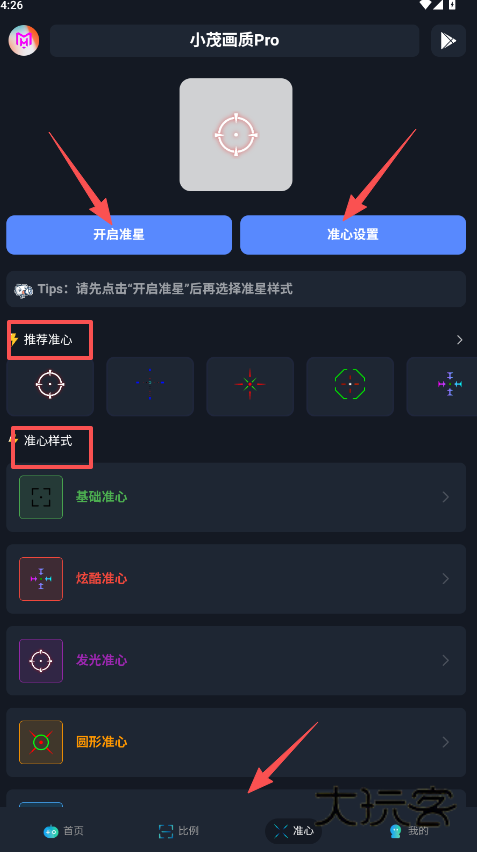3、“准心”为大家推荐多达上百种不同样式的准星设置,准星根据个人习惯而定,没有特定的规定要求,用起来舒服就行,如果不确定的话,也可以在开始正式游戏对局以前,在准心设置中预览不同效果,以达到你个人的完美游戏需求目的。
