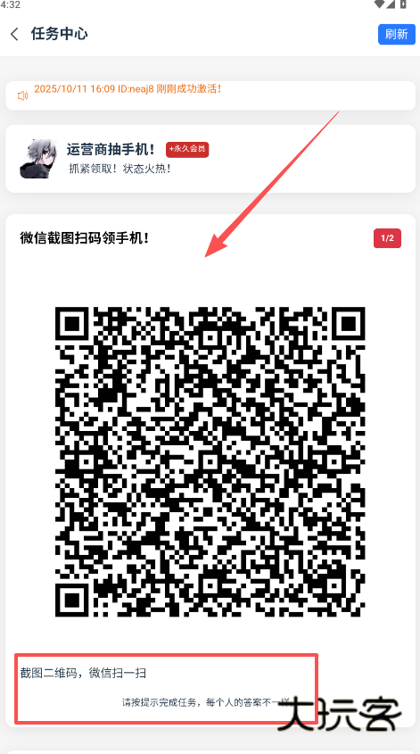 4、免费助力部分,字面上免费,实际过程比较复杂,需要先扫描二维码,参与领取手机活动。