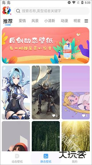 2、进入主界面即可看到主要是划分了动态和静态壁纸。