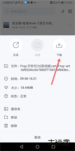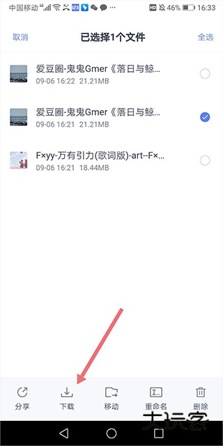 4、另外还有一个更快捷的方法就是在文件页面中直接长按文件,之后就会在下方同样会出现下载渠道的