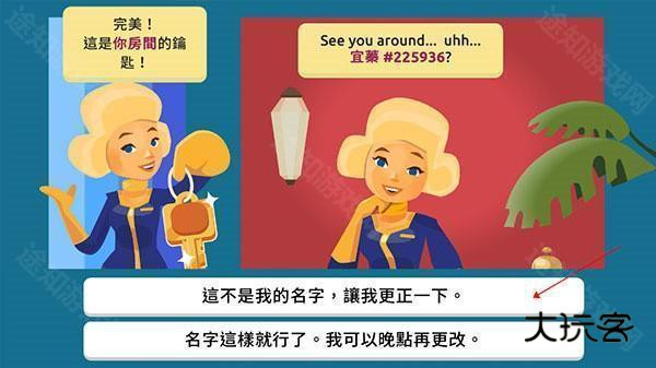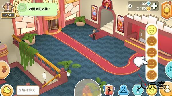 7、点击屏幕即可以操作角色前往,点击门就可以来到旅馆大厅,图示代表表情,可以随时改变心情。