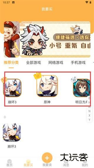 1、打开应用,在【我要买】页面选择游戏如【原神】。