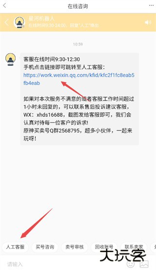 2、进入在线咨询界面,点击【人工客服】进行问题咨询。