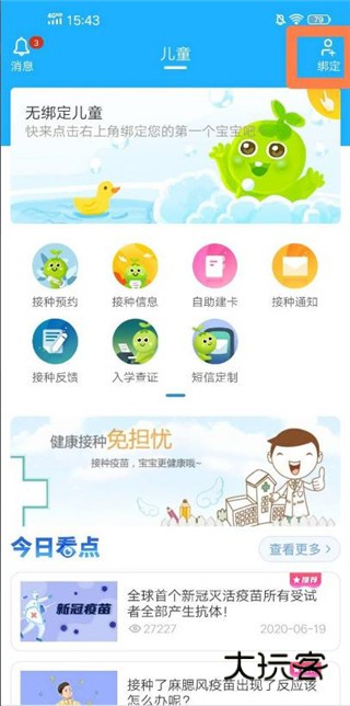 4、绑定成功,点击“接种预约”即可预约疫苗