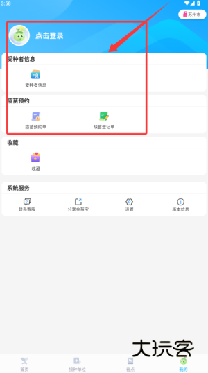 3、进入我的页面可进行登录或管理受种者及疫苗预约。