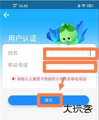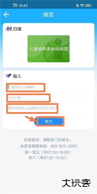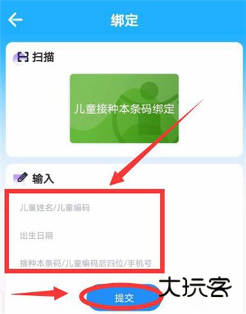 4、输入儿童姓名,出生日期,手机号码之后,单击“提交”