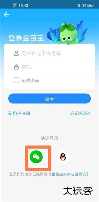 3、选择登录方式,登录金苗宝,此处以使用微信快捷登录为例