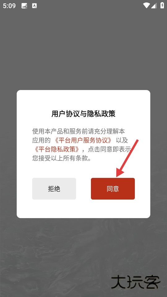 1、首次使用需阅读《平台用户服务协议》及《平台隐私政策》,若同意,点击【同意】。