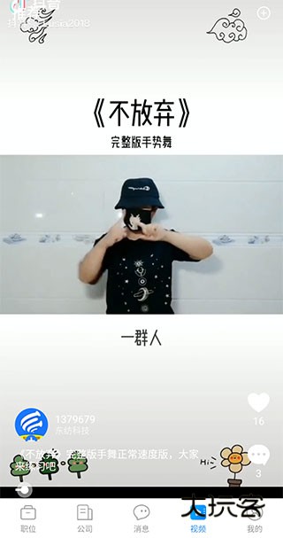 4、【视频】页面则为我们提供了各个公司的文艺创作内容,对于喜欢的内容我们还可以点赞或者评论。